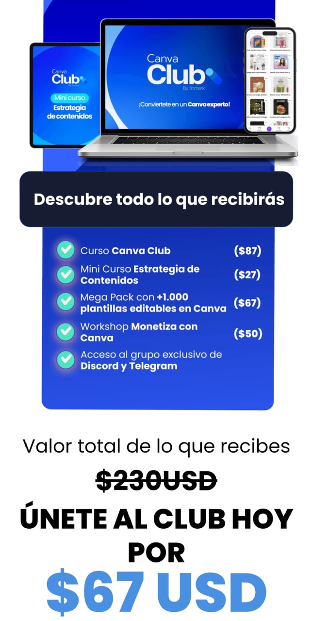 No hay un curso mas completo que Canva Club. Pagas solo una membresia
